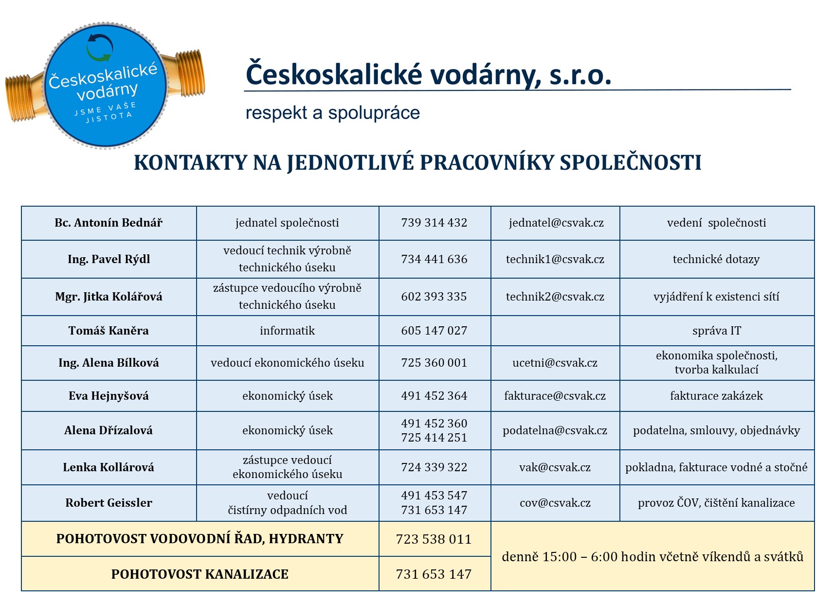• KONTAKTY NA JEDNOTLIVÉ PRACOVNÍKY SPOLEČNOSTI