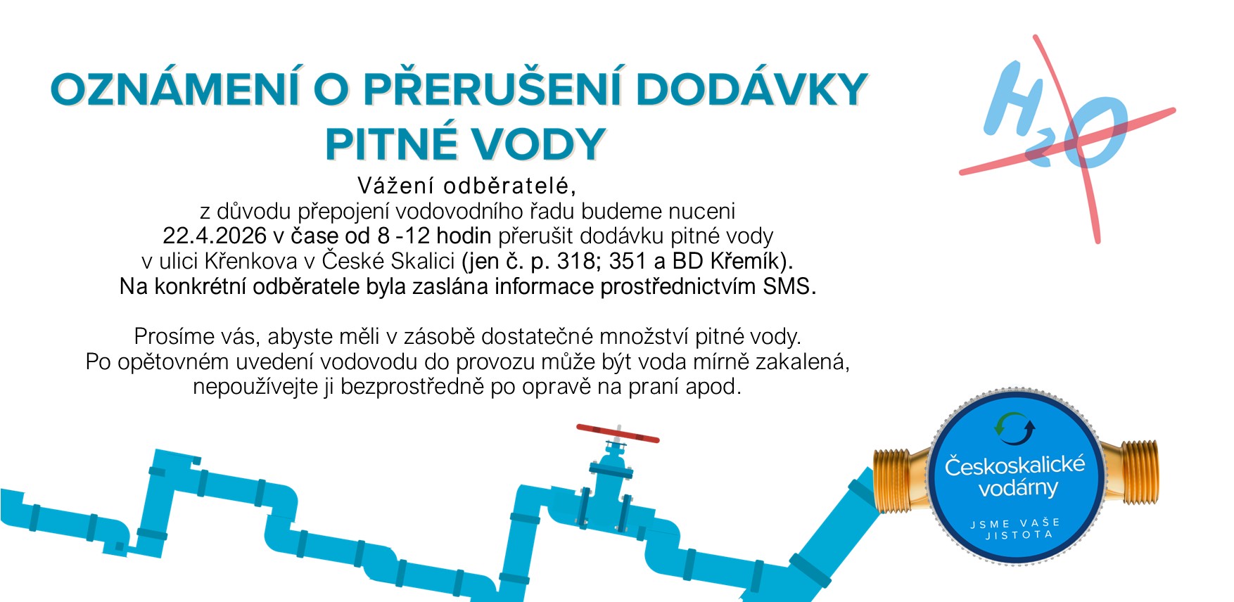• Odstávka pitné vody 19.3.2026 – část ulice Křenkova